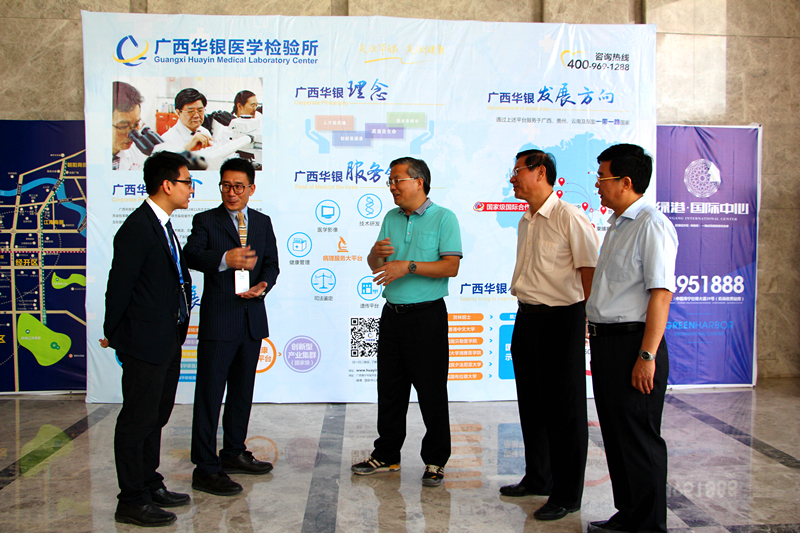 當(dāng)天下午,周紅波一行首先來到位于綠港·國際中心B4棟的廣西華銀醫(yī)學(xué)檢測所,聽取了廣西華銀醫(yī)學(xué)檢測所相關(guān)負(fù)責(zé)人的企業(yè)生產(chǎn)經(jīng)營情況匯報,走訪該所廣西醫(yī)學(xué)檢驗中心、廣西轉(zhuǎn)化醫(yī)學(xué)研究中心、東盟國際遠程病理診斷中心,實地了解實驗室建設(shè)運營情況。廣西華銀醫(yī)學(xué)檢測所于2016年1月進駐綠港·國際中心,以4500平米實驗室作為廣西總部基地,業(yè)務(wù)范圍輻射廣西、云南及東盟各國,總投資規(guī)模近1億元,引入全國第一條完整的微生物全自動流水線,建設(shè)了國內(nèi)第一家東盟遠程病理診斷中心以及全國最大規(guī)模的精準(zhǔn)醫(yī)學(xué)實驗中心。
