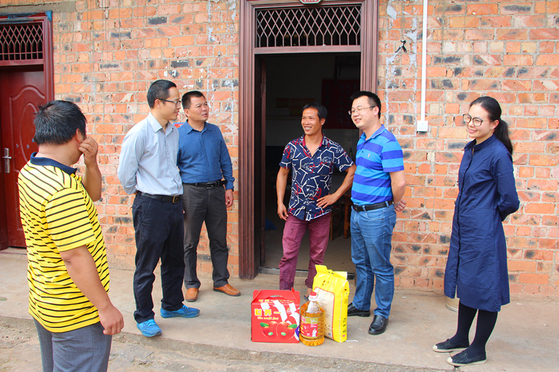 座談會(huì)結(jié)束后,在那樓鎮(zhèn)陸文威書記的陪同下,龔國(guó)強(qiáng)董事長(zhǎng)一行先后來到貧困戶盧創(chuàng)興和梁蔭坎家里開展入戶慰問工作。在盧創(chuàng)興家里,龔董事長(zhǎng)緊緊握住盧創(chuàng)興老人的手,詳細(xì)地了解盧創(chuàng)興家庭情況,當(dāng)了解到盧創(chuàng)興家通過轉(zhuǎn)移勞動(dòng)力的方式,增加創(chuàng)收途徑,實(shí)現(xiàn)脫貧的時(shí)候,龔董事長(zhǎng)頻頻點(diǎn)頭。在貧困戶梁蔭坎家里,董事長(zhǎng)了解到他通過發(fā)展種養(yǎng),憑著農(nóng)村人樸實(shí)無華的特質(zhì),種養(yǎng)產(chǎn)品不僅獲得豐收且供不應(yīng)求的時(shí)候,董事長(zhǎng)給他豎起了大拇指,鼓勵(lì)他繼續(xù)擴(kuò)大生產(chǎn)規(guī)模,早日實(shí)現(xiàn)小康生活。調(diào)研組一行還向兩戶貧苦戶送上了慰問品。