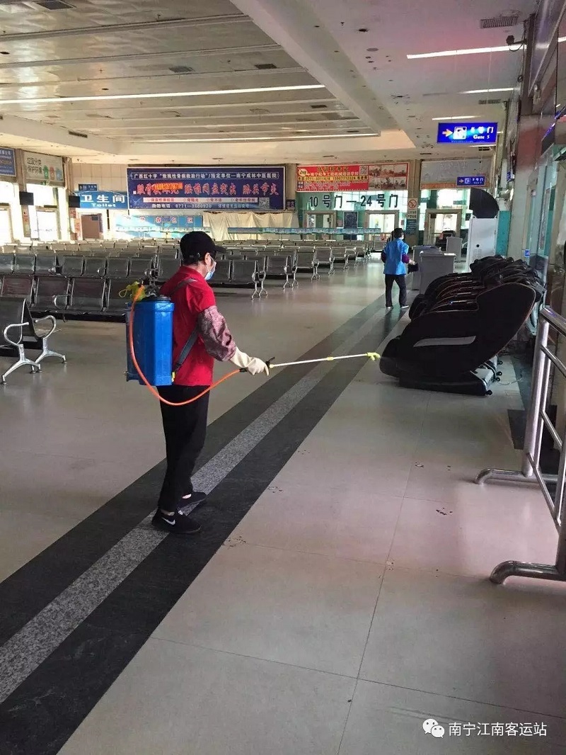 ▲江南客運站對站內(nèi)座椅等相關(guān)設(shè)施進(jìn)行消殺。 (江南客運站供圖)