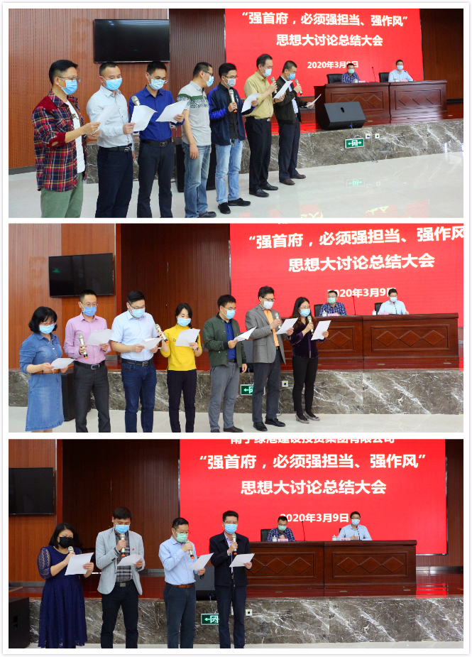 最后,集團黨委書記、董事長龔國強對本次思想大討論活動開展情況進行了總結點評,并要求各部門、各子公司認真踐行諾言,落實落細措施,確保取得良好成效。龔書記表示,當前疫情形勢依然嚴峻復雜,全國各地都在做好疫情防控的前提下,出臺了一系列政策措施,搶開局、穩(wěn)經濟、促發(fā)展。綠港集團在疫情防控的關鍵時刻召開這次總結會,就是要進一步營造一心一意謀發(fā)展的濃厚氛圍,形成全力以赴落實強首府戰(zhàn)略的強烈共識,傳遞出疫情防控和經濟發(fā)展兩手抓、兩手都要硬的鮮明導向和強烈信號,為實現(xiàn)集團公司高質量發(fā)展的“加速度”,全力以赴完成好新的一年集團公司的各項發(fā)展任務目標。作為經開區(qū)最大的平臺公司,2020年年初以來,綠港集團緊緊圍繞“強首府,必須強擔當、強作風”的總體要求,著重在“學精神、查不足、求改變、強擔當”上下功夫,針對如何解決六個方面突出問題、如何克服十種突出現(xiàn)象以及如何在八種情形下運用容錯糾錯機制,結合工作實際,群策群力開展了三次專題思想大討論活動,通過查深、查透、立行立改,有力轉變了作風,進一步提高了干部職工的緊迫感、使命感,為全面落實強首府戰(zhàn)略,奮力譜寫集團公司高質量發(fā)展新篇章凝聚了共識,集聚了動力。